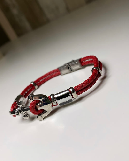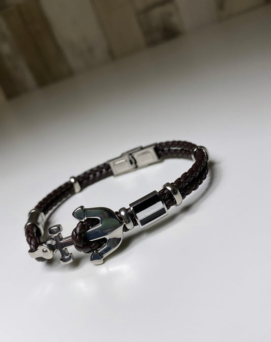 Bracelet Homme double cordons tressé , ancre marine