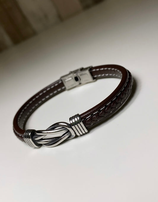 Bracelet Homme en cuir tressé Marron