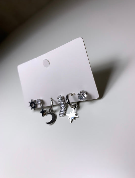 Ensemble boucles d’oreilles lune, étoile, perle