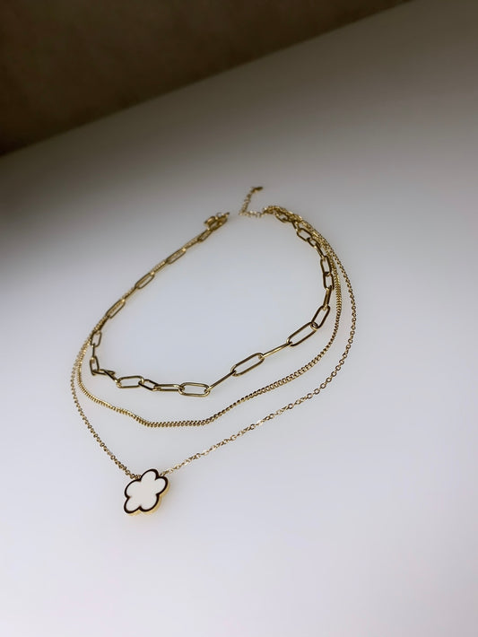 Collier Lara multi-rangs trèfle blanc