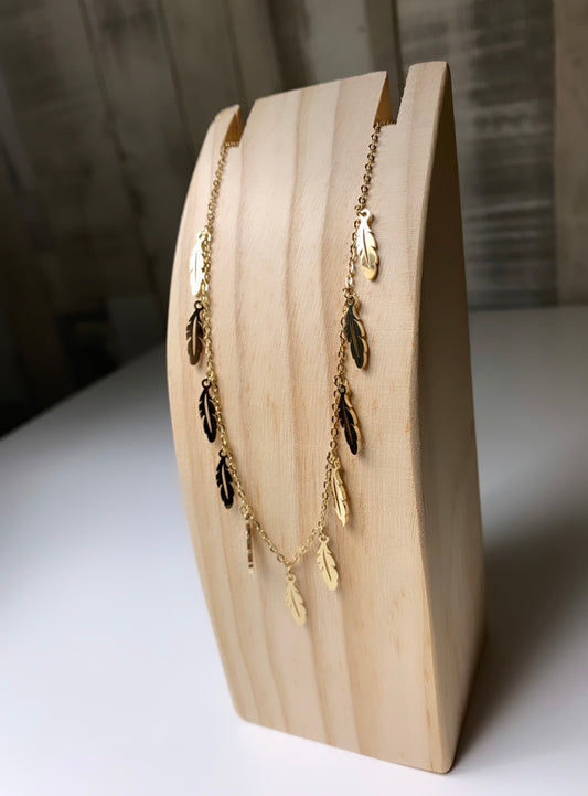 Collier plusieurs plumes doré