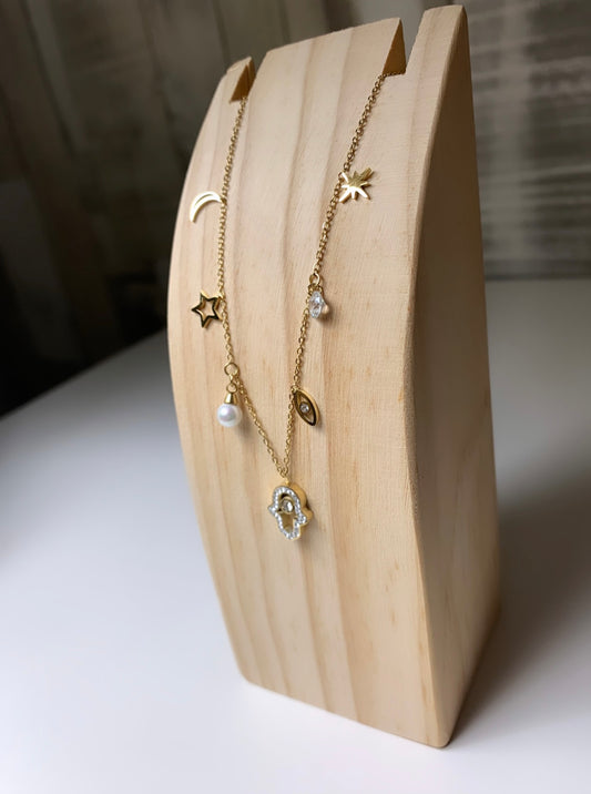 Collier main de fatma avec plusieurs motifs
