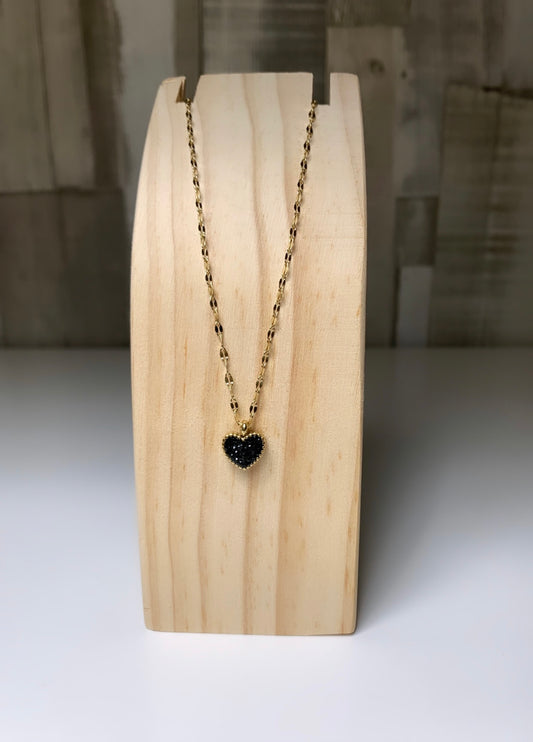 Collier cœur avec strass blanc et noir